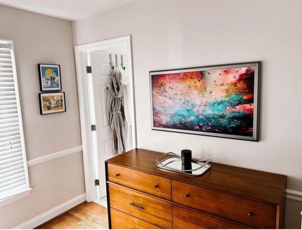Enter the Frame TV: a display with a slim, customized bezel edge that mimics the elegant frames on your favorite artwork to blend perfectly with your decor. Below are some ways we use Frame TVs to turn your flatscreen from an eye sore to an eye-catching addition.
